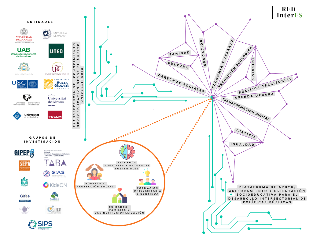 Como el anterior, el objetivo es la puesta en marcha de una red de transferencia, denominada InterES, para sistematizar intercambiar y difundir el conocimiento socioeducativo generado por los doce grupos de investigación cuyas líneas de trabajo se inscriben en torno al campo de conocimiento de la Pedagogía Social, ciencia teórico-práctica orientada al desarrollo integral de las personas y comunidades a través del aprendizaje permanente y la transformación social.